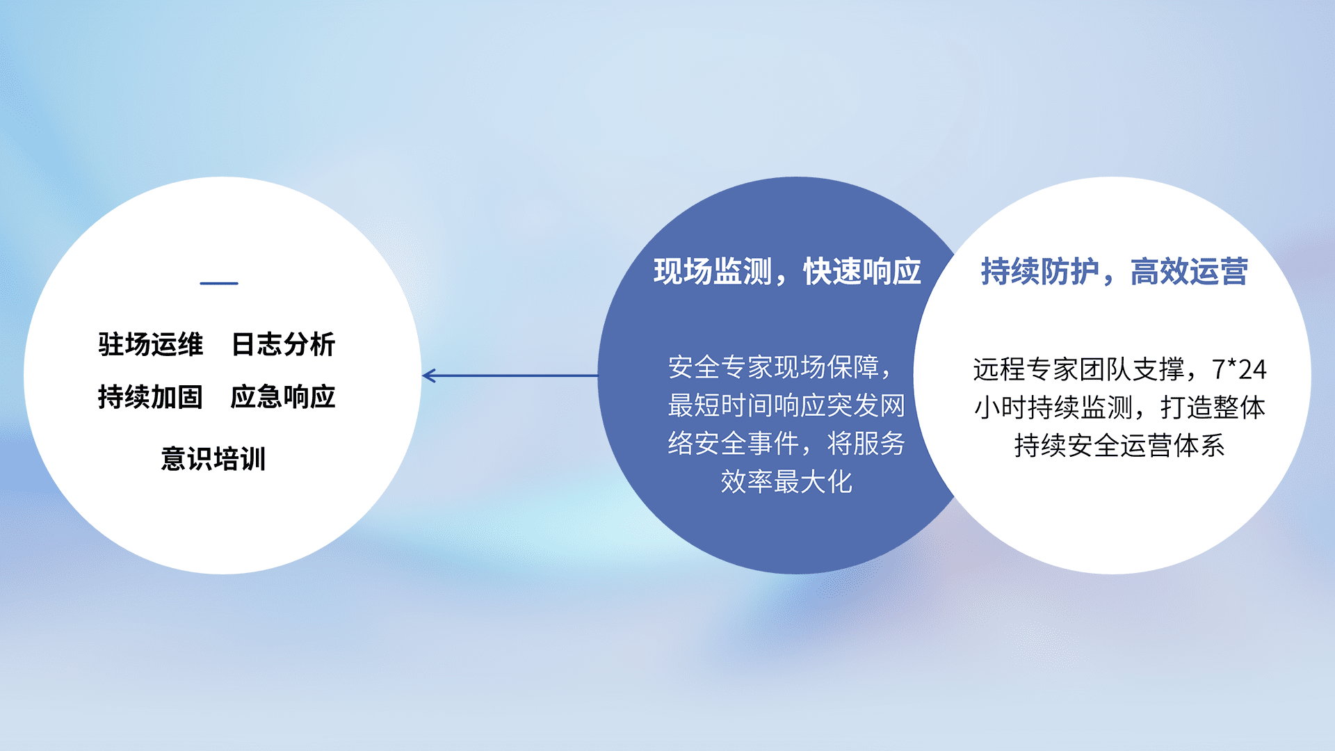 7X24小时持续监测安全事件,保持安全策略有效性,降低资产脆弱性风险,,精准拦截黑客攻击,,减少被黑客利用的机会,,第一时间遏制,,降低损失。。
